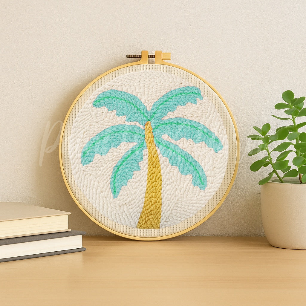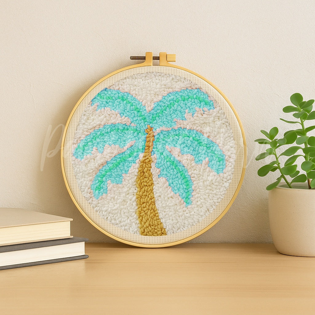 Escape to a tropical paradise with our Blue Palm Tree Punch Needle Kit – a relaxing and beginner-friendly DIY craft that brings beachy vibes to your home! This vibrant design features a golden brown palm tree trunk with breezy blue-green leaves set against a soft sandy background. Perfect for anyone who loves coastal décor, summer themes, or mindful stitching, this punch needle kit is a fun way to create textured, handmade art that captures the carefree spirit of the tropics.