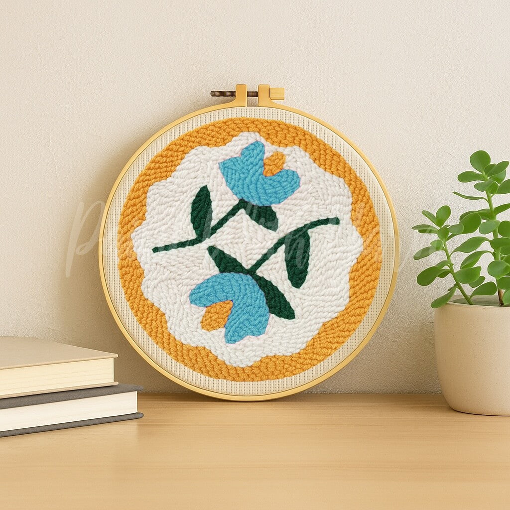 Add a touch of handmade charm to your space with our Blue Twin Flowers Punch Needle Kit. Featuring two graceful blue blossoms framed by a warm golden border, this floral design brings a fresh and cheerful vibe to any room. Perfect for beginners and seasoned crafters alike, this DIY kit includes everything you need to create textured, wall-ready fiber art with ease and joy.