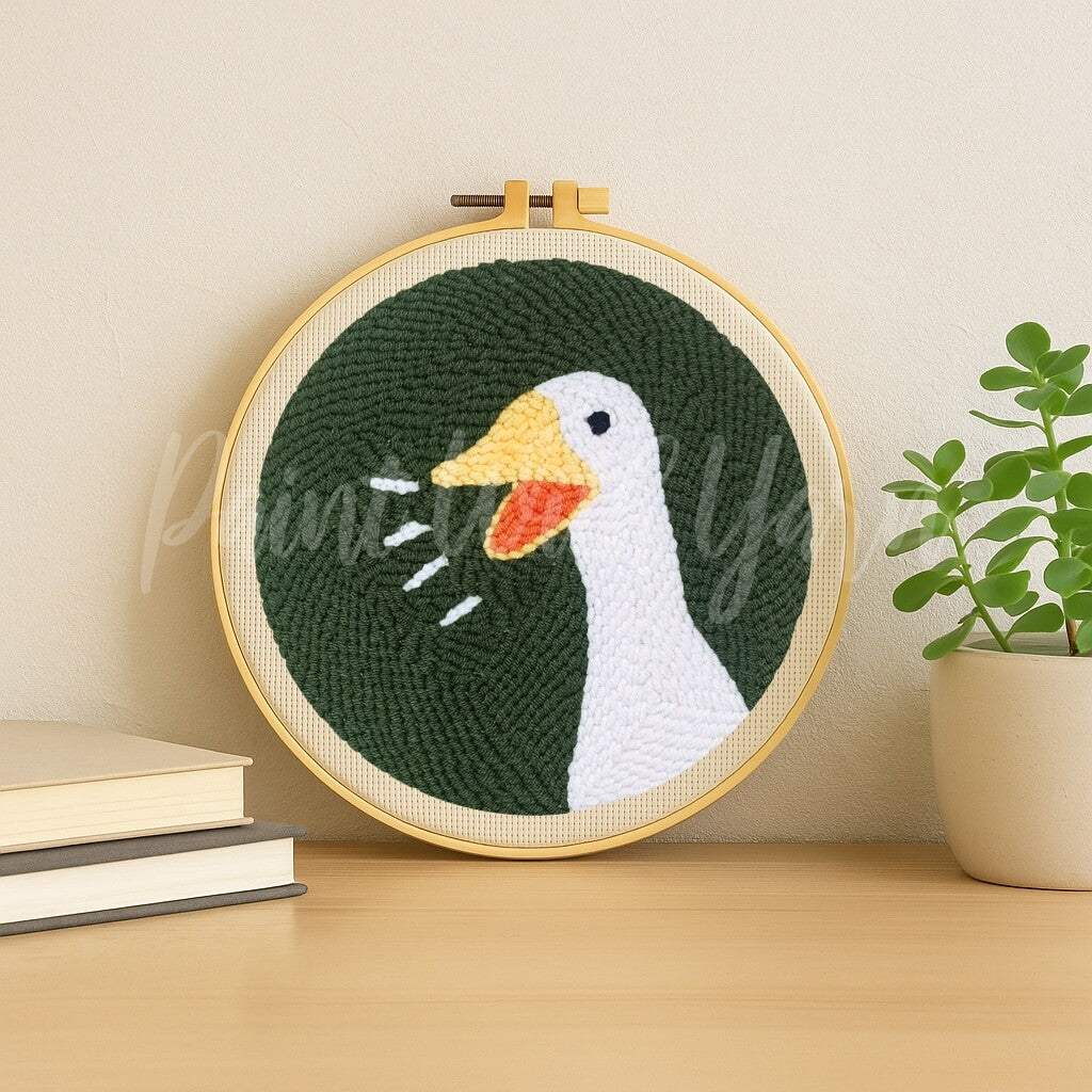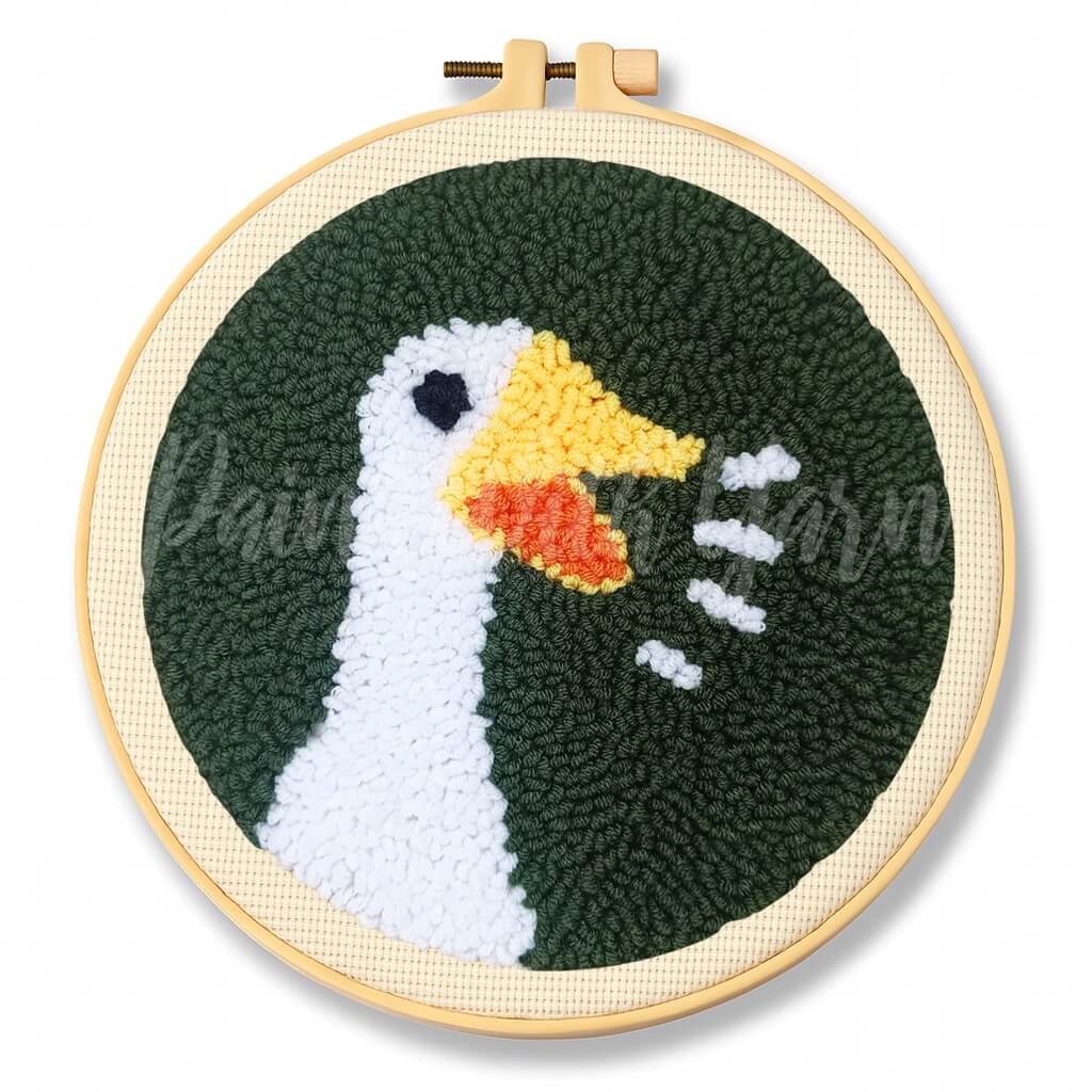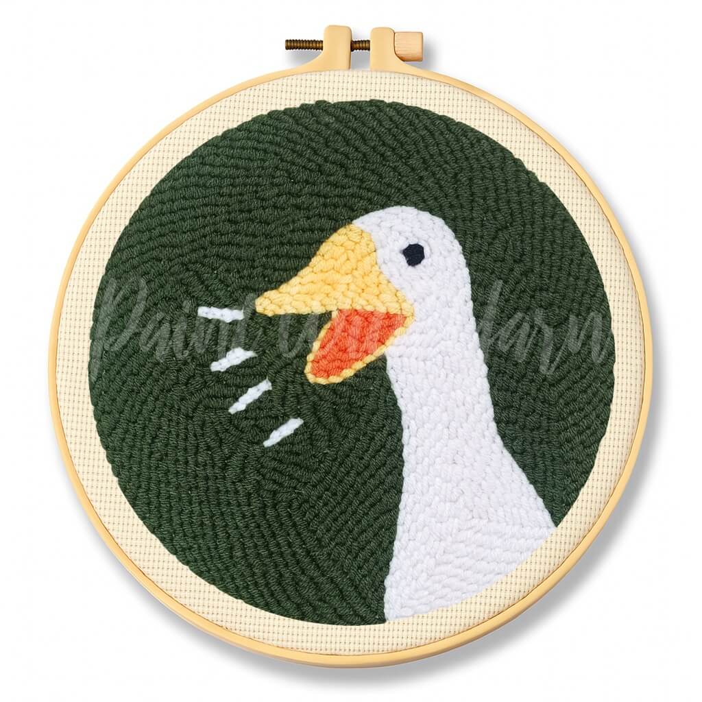 Let your creativity honk out loud with the Honk Time Punch Needle Kit! Featuring a lively goose mid-shout against a rich green backdrop, this charming design brings personality and fun to your punch needle collection. Whether you're new to punch needle embroidery or looking for your next quick craft project, this kit includes everything you need to stitch a bold and playful masterpiece that’s sure to make anyone smile.