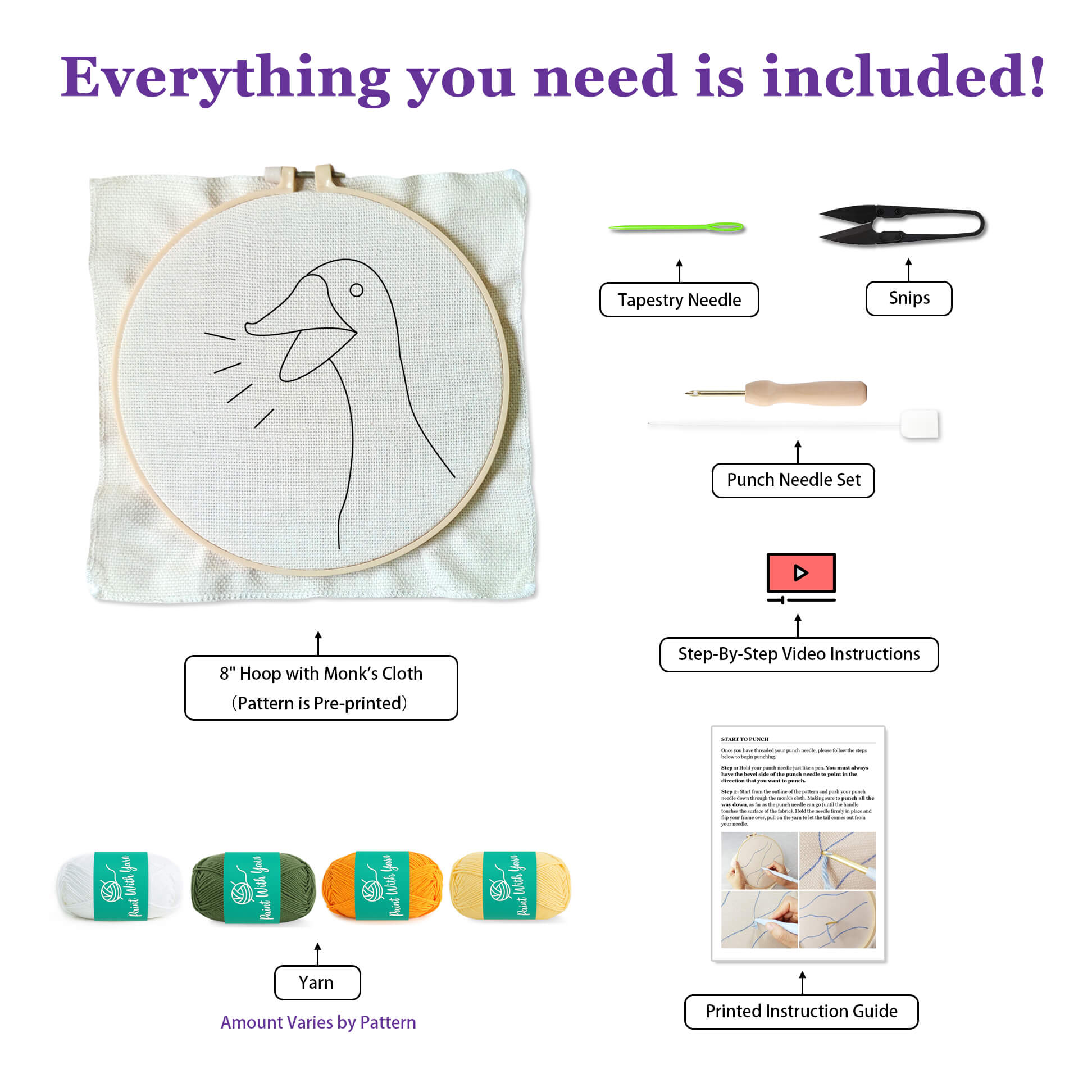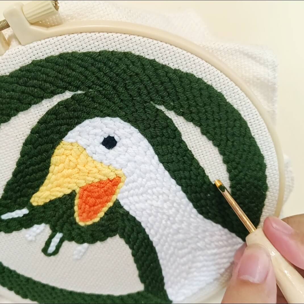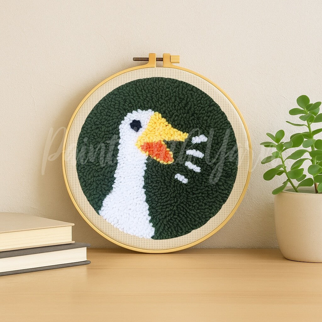 Let your creativity honk out loud with the Honk Time Punch Needle Kit! Featuring a lively goose mid-shout against a rich green backdrop, this charming design brings personality and fun to your punch needle collection. Whether you're new to punch needle embroidery or looking for your next quick craft project, this kit includes everything you need to stitch a bold and playful masterpiece that’s sure to make anyone smile.