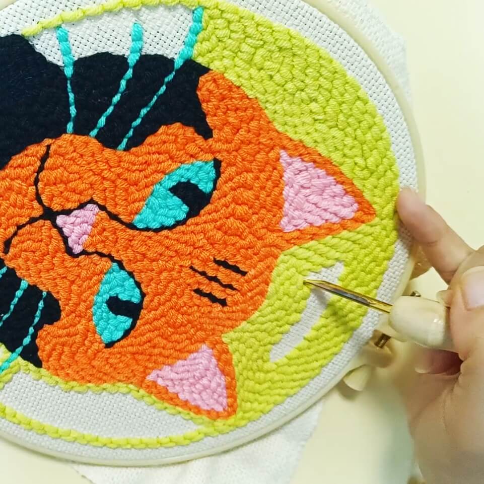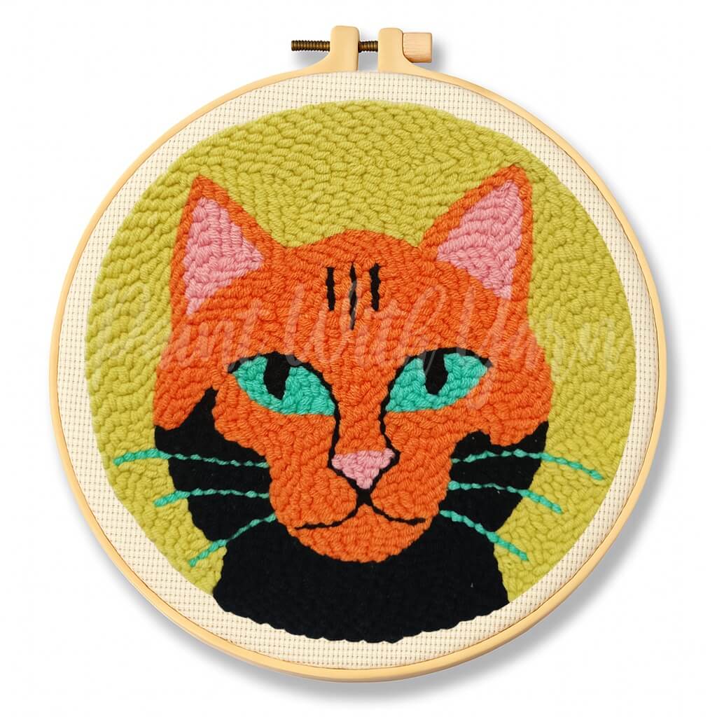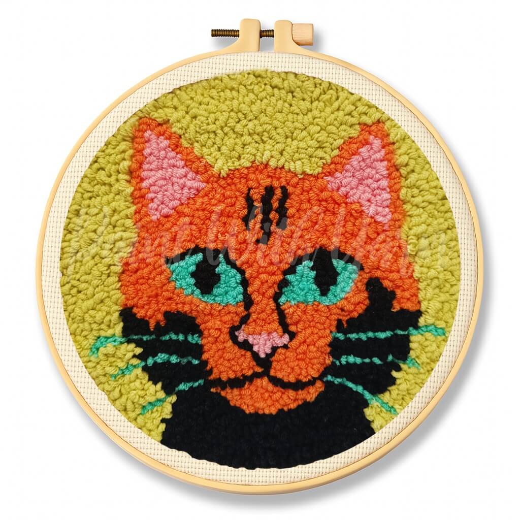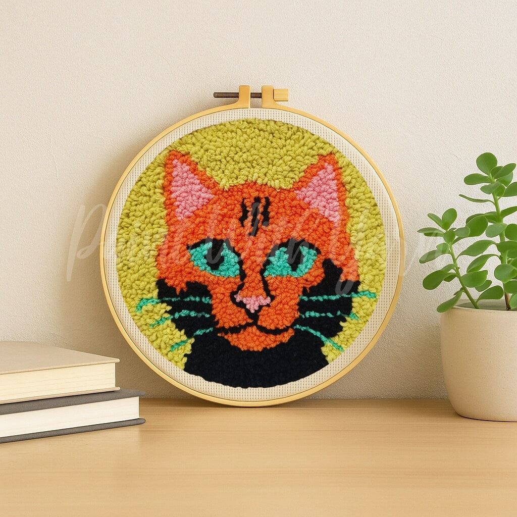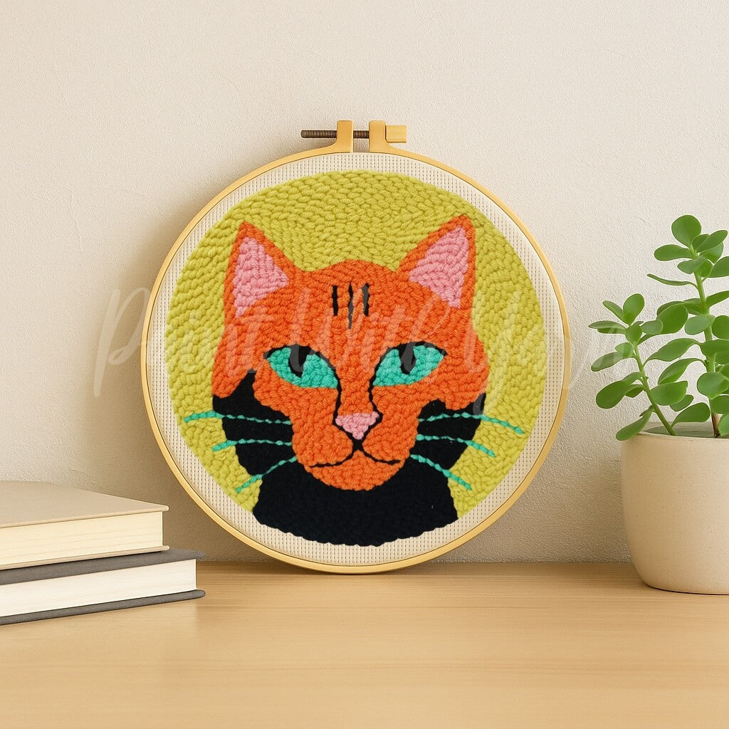 Make a bold statement with our Orange Cosmic Cat Punch Needle Kit! Featuring a striking orange feline with vivid turquoise eyes against a cosmic green background, this design blends playful charm with modern artistry. Perfect for beginners and seasoned crafters alike, this DIY kit includes everything you need to create a vibrant, textured masterpiece that celebrates your love for cats and creativity.