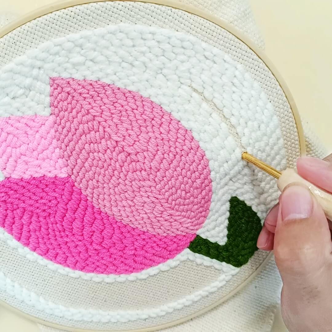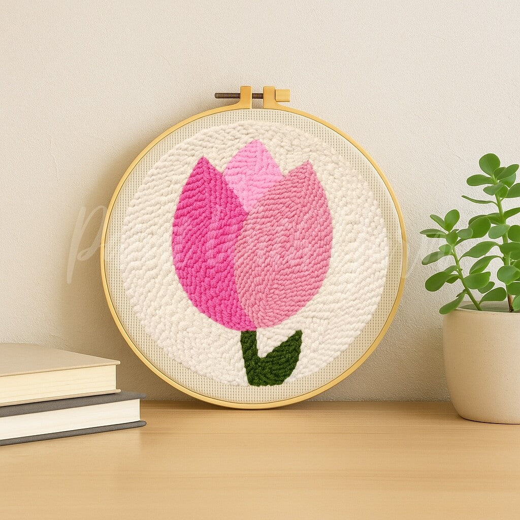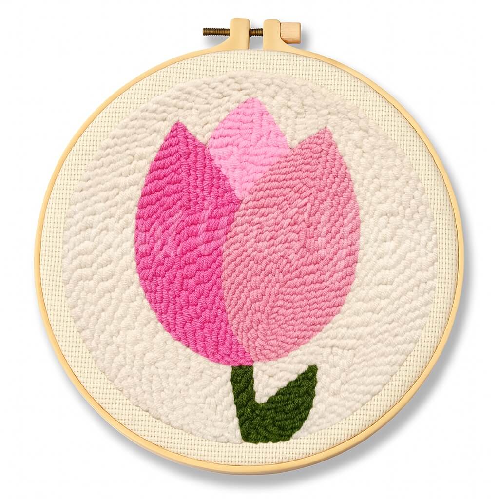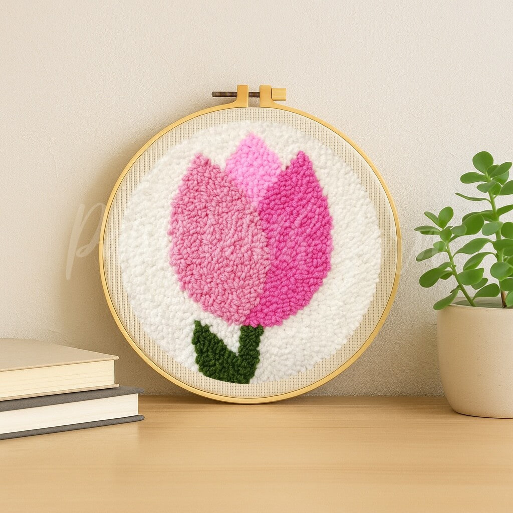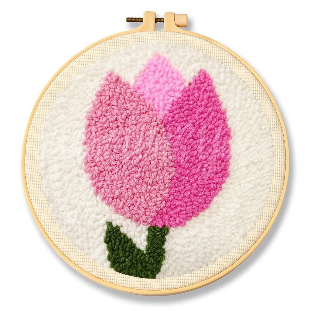 Celebrate the beauty of blooming flowers with our Pink Bloom Punch Needle Kit. Featuring three overlapping petals in radiant shades of pink, this simple yet charming design adds a gentle burst of color to any room. Whether you're a beginner or seasoned crafter, this relaxing project is perfect for unwinding and creating something beautiful with your own hands.