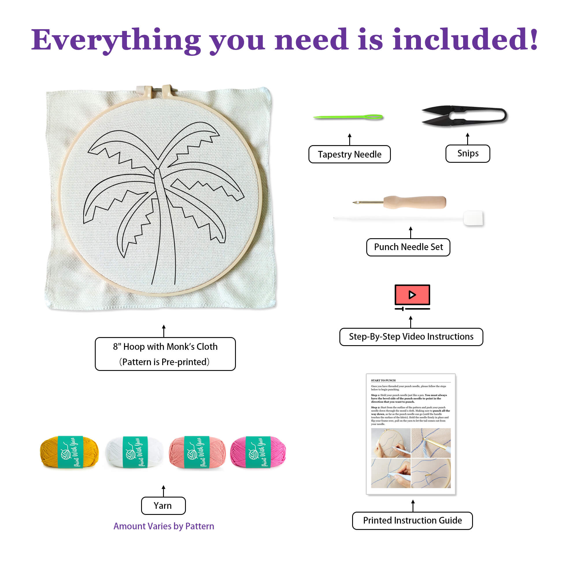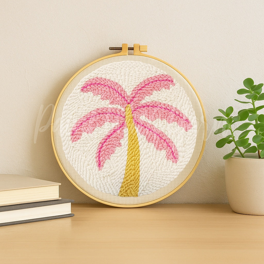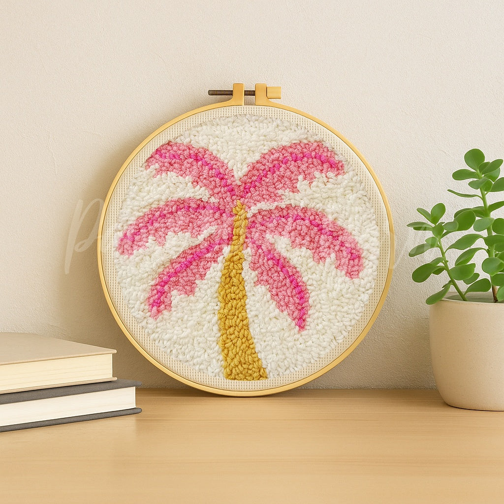 Add a splash of tropical fun to your space with our Pink Palm Tree Punch Needle Kit! Featuring playful shades of pink and a sunny golden trunk, this vibrant design is perfect for bringing beachy vibes into your home. Whether you're new to punch needle or love fiber art, this beginner-friendly DIY kit makes it easy and enjoyable to create your own textured tropical decor.