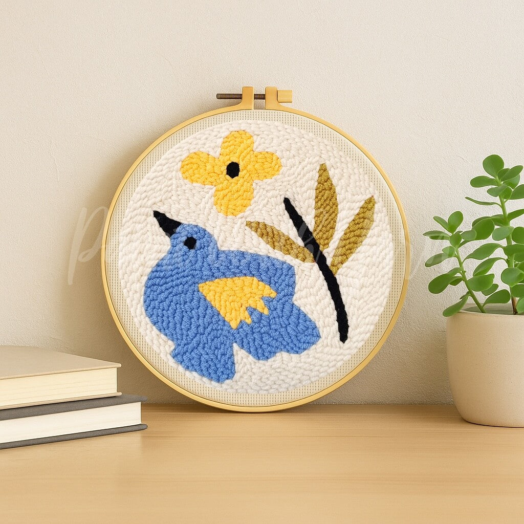 Celebrate the beauty of nature with our Spring Bluebird Punch Needle Kit – a delightful DIY craft featuring a cheerful bluebird, golden flower, and fresh green leaves. This charming design brings the joy of spring to life with soft, textured yarn and a soothing color palette. Whether you're new to punch needle or a seasoned crafter, this kit offers an easy and relaxing way to create your own handmade art. Perfect for decorating your home or gifting to someone who loves birds, flowers, and fiber art.