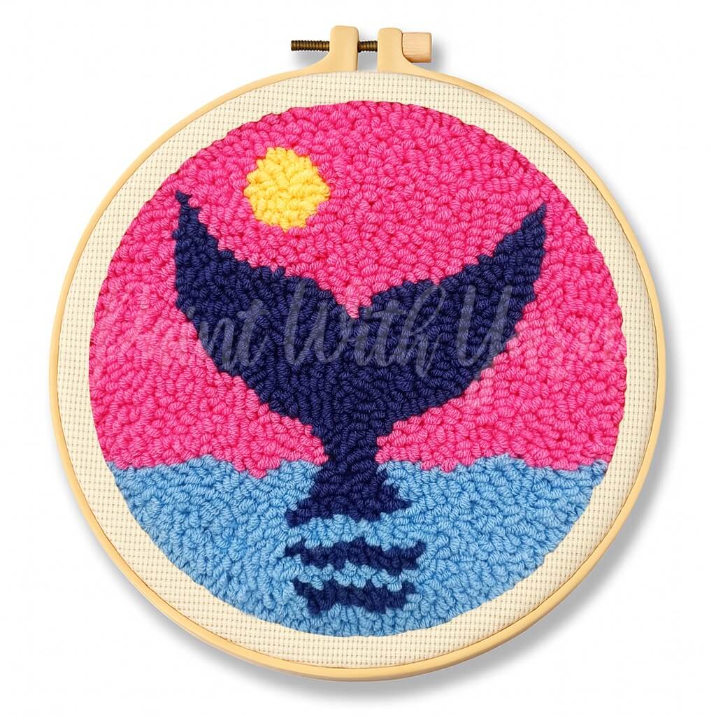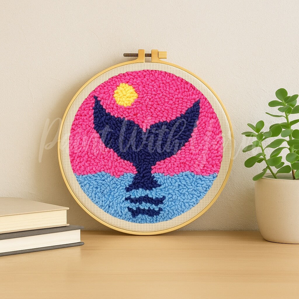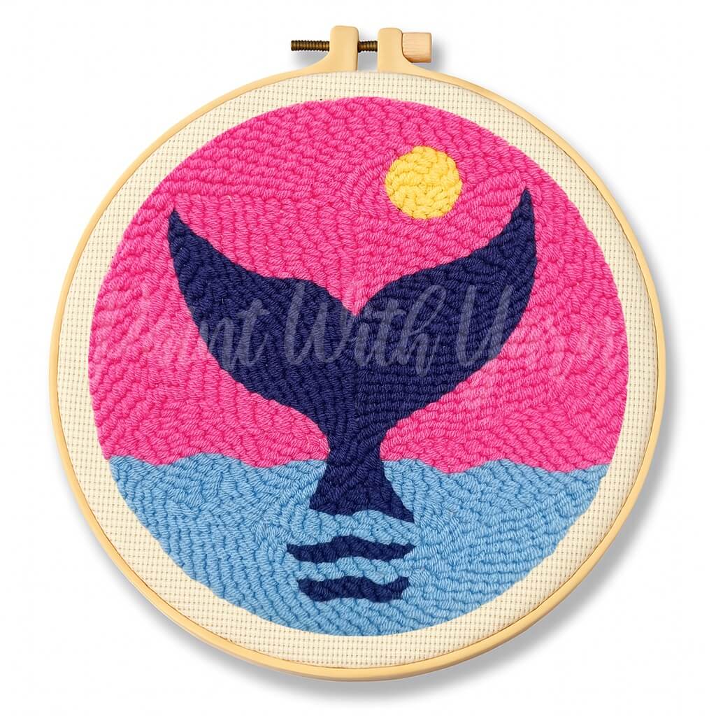 Craft a peaceful seascape with the Sunset Whale Punch Needle Kit. Featuring a bold whale tail diving into calming blue waves under a radiant pink sunset, this beginner-friendly kit brings a splash of color and coastal charm to your space. Perfect for marine life lovers and punch needle beginners alike, it's a fun, relaxing DIY project with ocean-inspired flair.