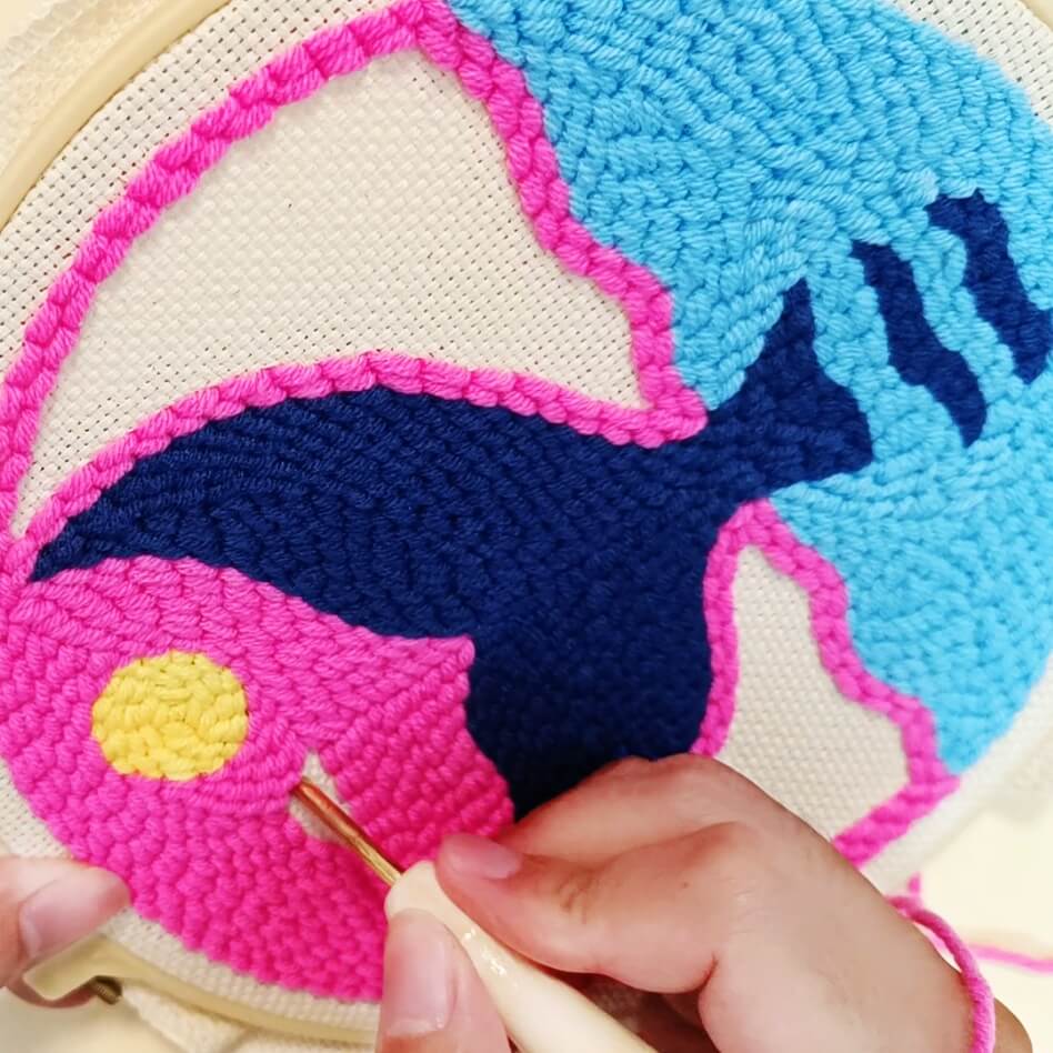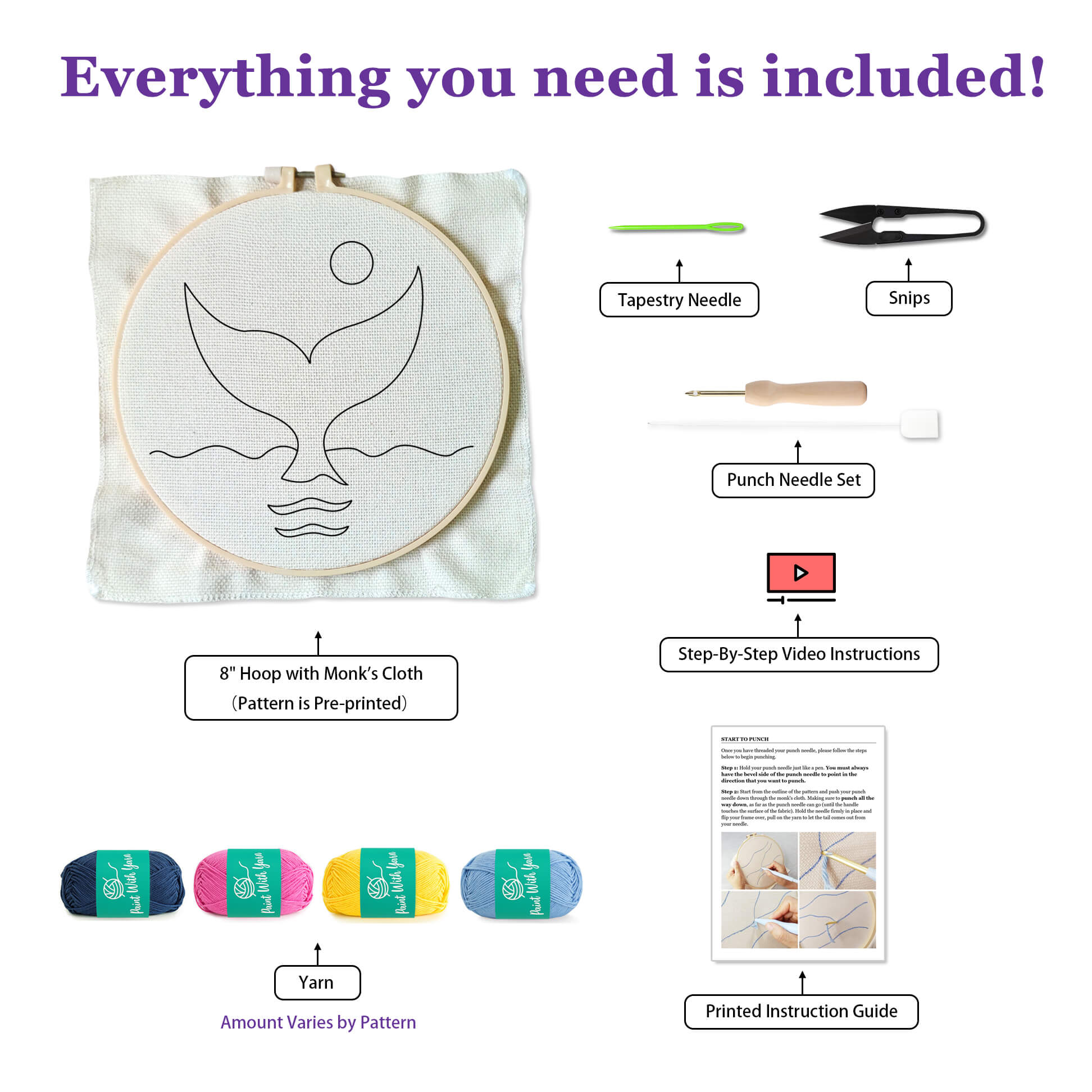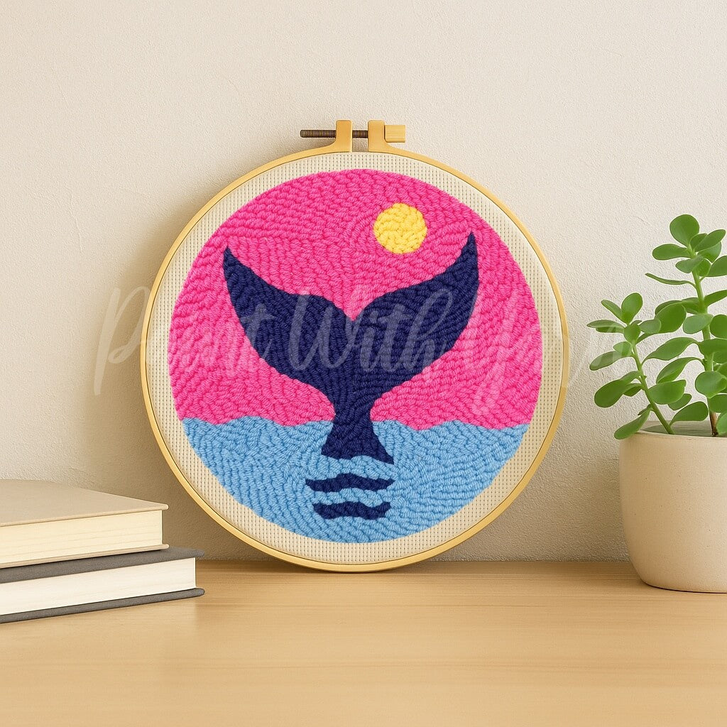 Craft a peaceful seascape with the Sunset Whale Punch Needle Kit. Featuring a bold whale tail diving into calming blue waves under a radiant pink sunset, this beginner-friendly kit brings a splash of color and coastal charm to your space. Perfect for marine life lovers and punch needle beginners alike, it's a fun, relaxing DIY project with ocean-inspired flair.