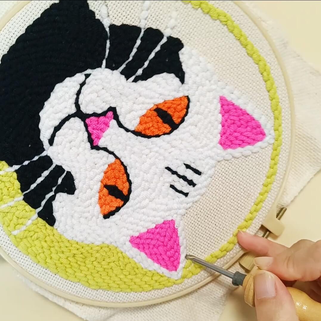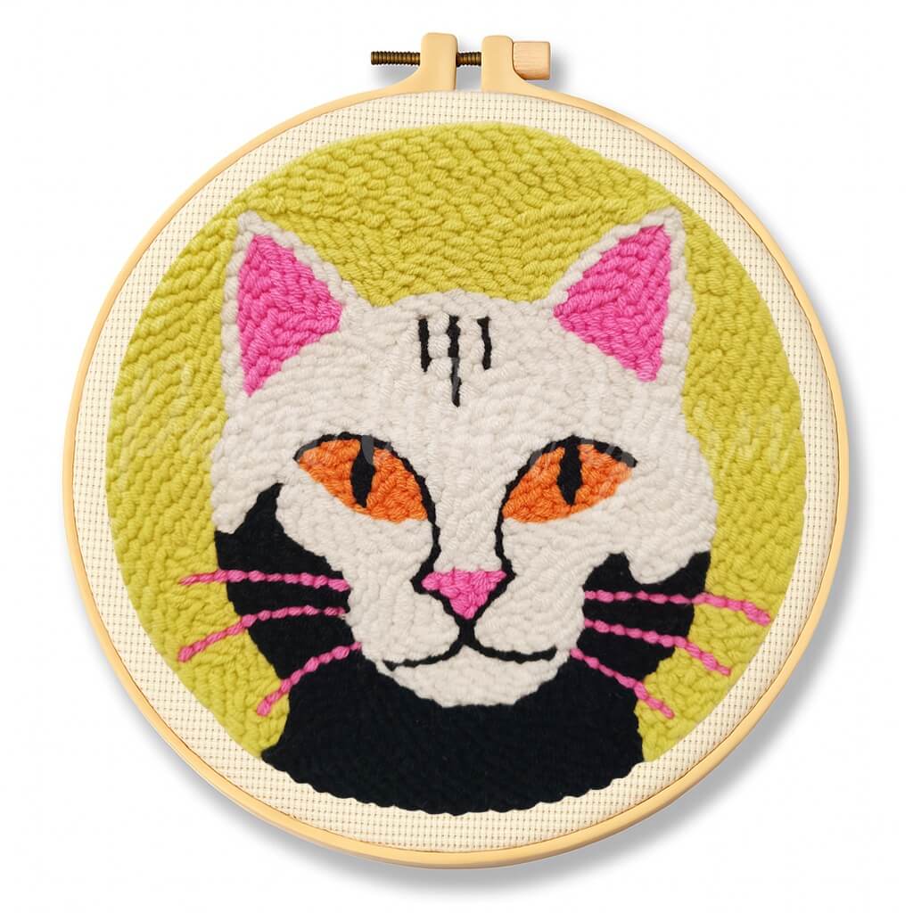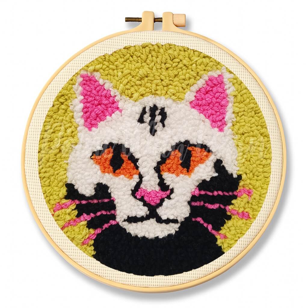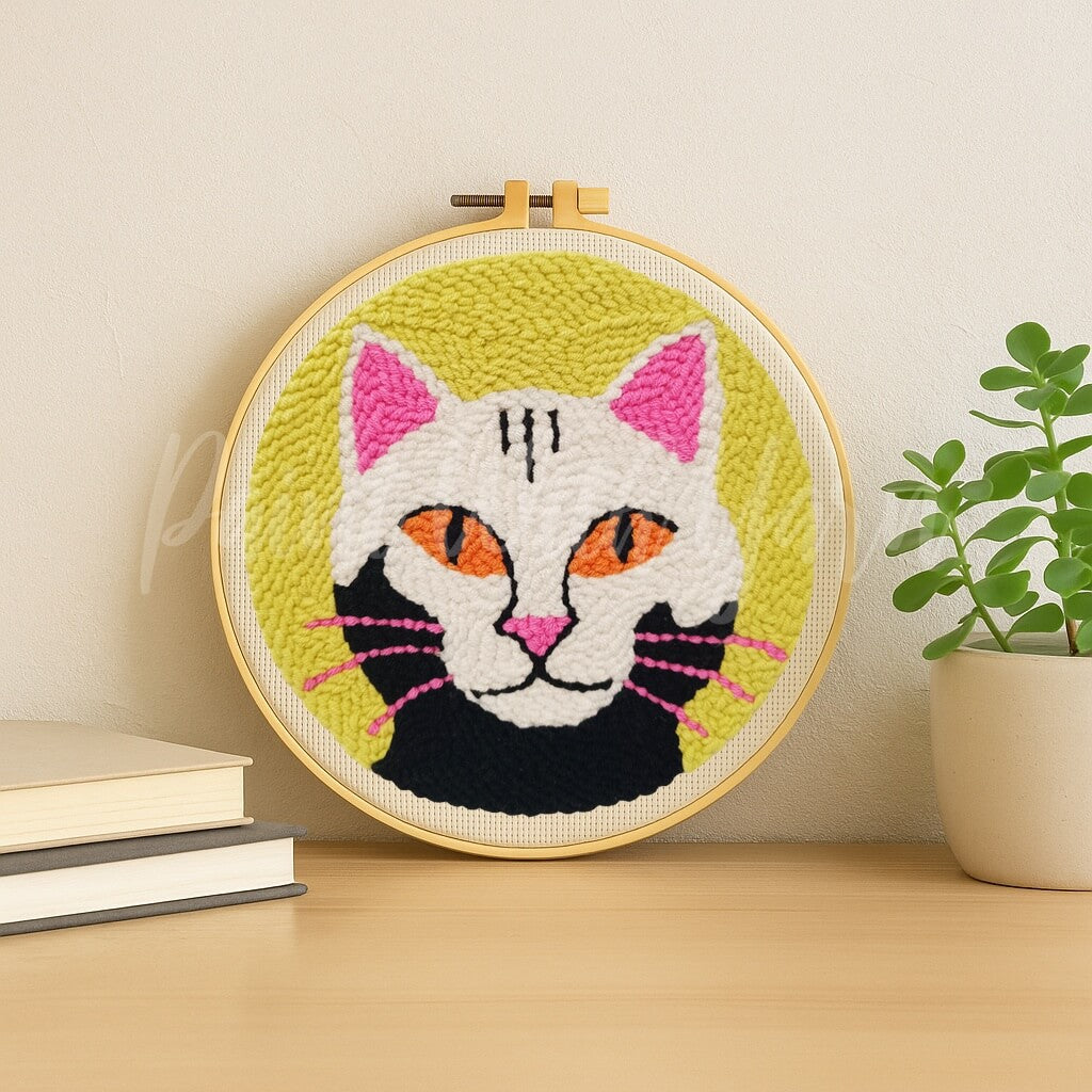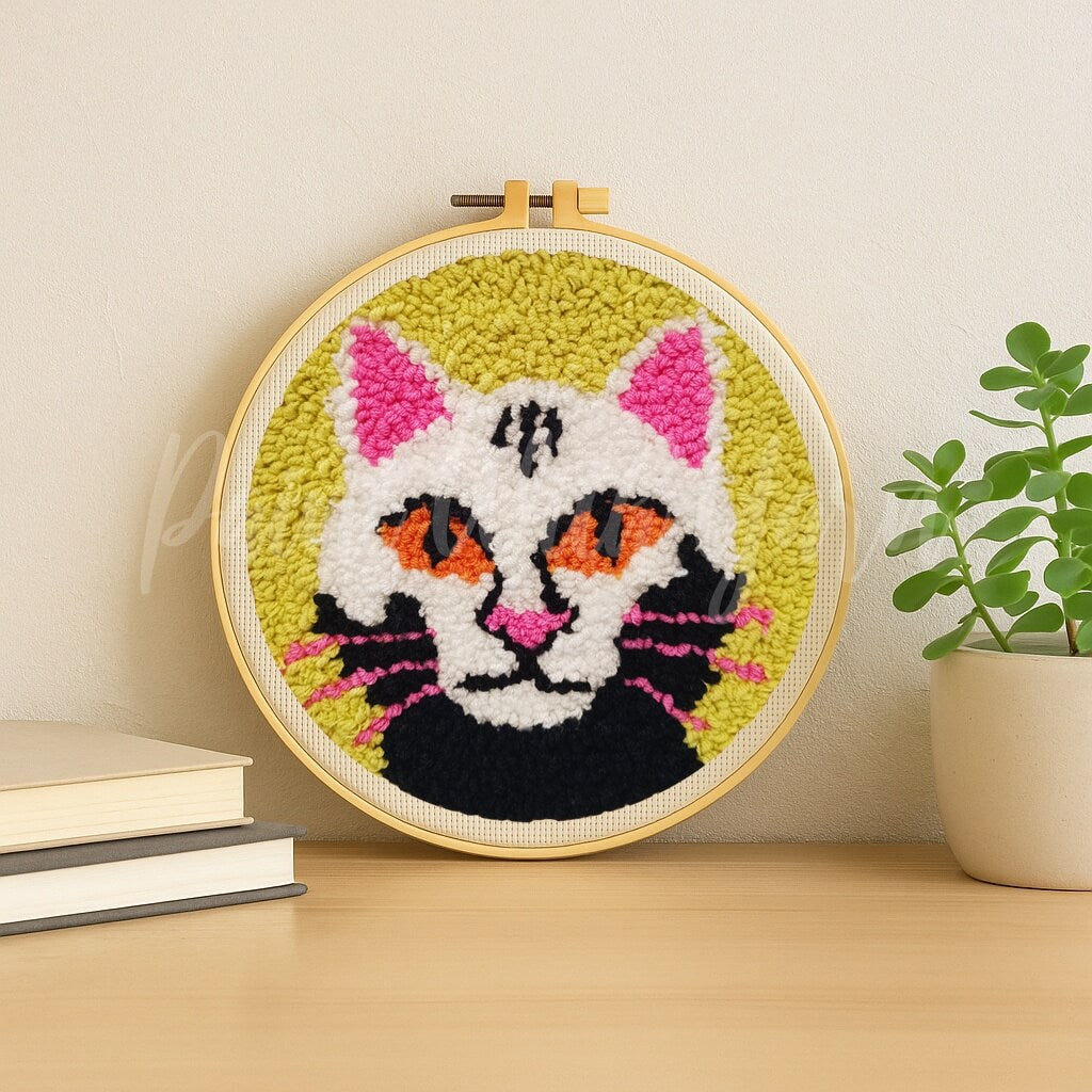 Bring bold personality to your space with our White Cosmic Cat Punch Needle Kit! Featuring a striking white cat with vivid orange eyes, pink accents, and a cosmic green backdrop, this eye-catching design is perfect for cat lovers and creative souls. Whether you're a beginner or a punch needle pro, this DIY kit includes everything you need to craft a textured masterpiece that’s full of feline attitude and charm.