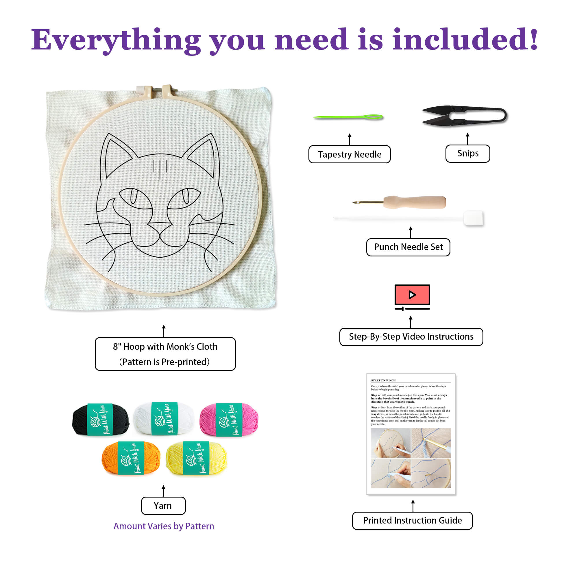 Absolutely! Thousands of beginners have discovered the joy of punch needle with our kits—and you can too. At Paint With Yarn, we design each punch needle kit to make learning simple, relaxing, and fun. You’ll receive everything you need: pre-printed fabric, premium yarn, punch needle tools, and both step-by-step video tutorials and printed instructions to guide you from start to finish. No experience needed—just unpack, follow along, and enjoy the satisfaction of turning yarn into art.