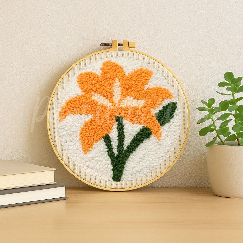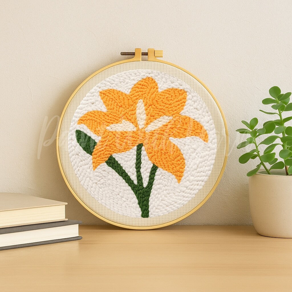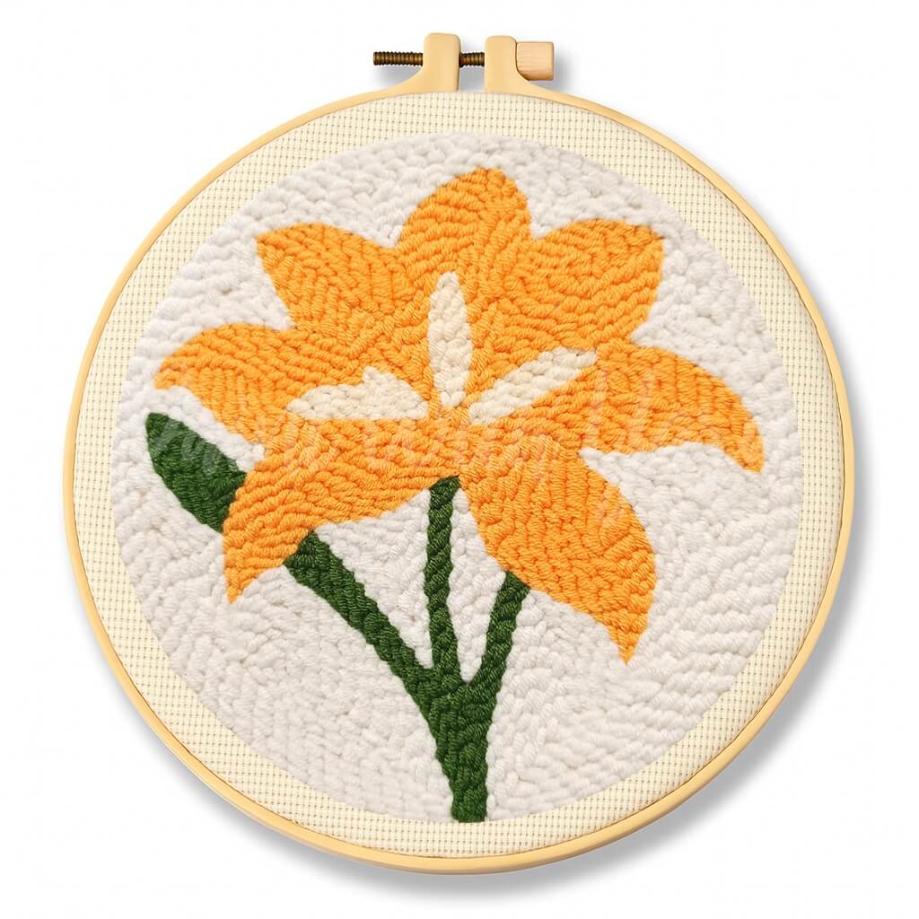 Brighten up your space with the cheerful charm of the Yellow Lily Punch Needle Kit. This vibrant design features a blooming lily in bold yellow tones, paired with fresh green leaves on a soft white background. The bold floral silhouette is both modern and timeless, making it a perfect piece for spring-inspired décor or a sunny handmade gift. Ideal for beginners and experienced crafters alike, this kit brings a splash of warmth and joy to your needlework collection.